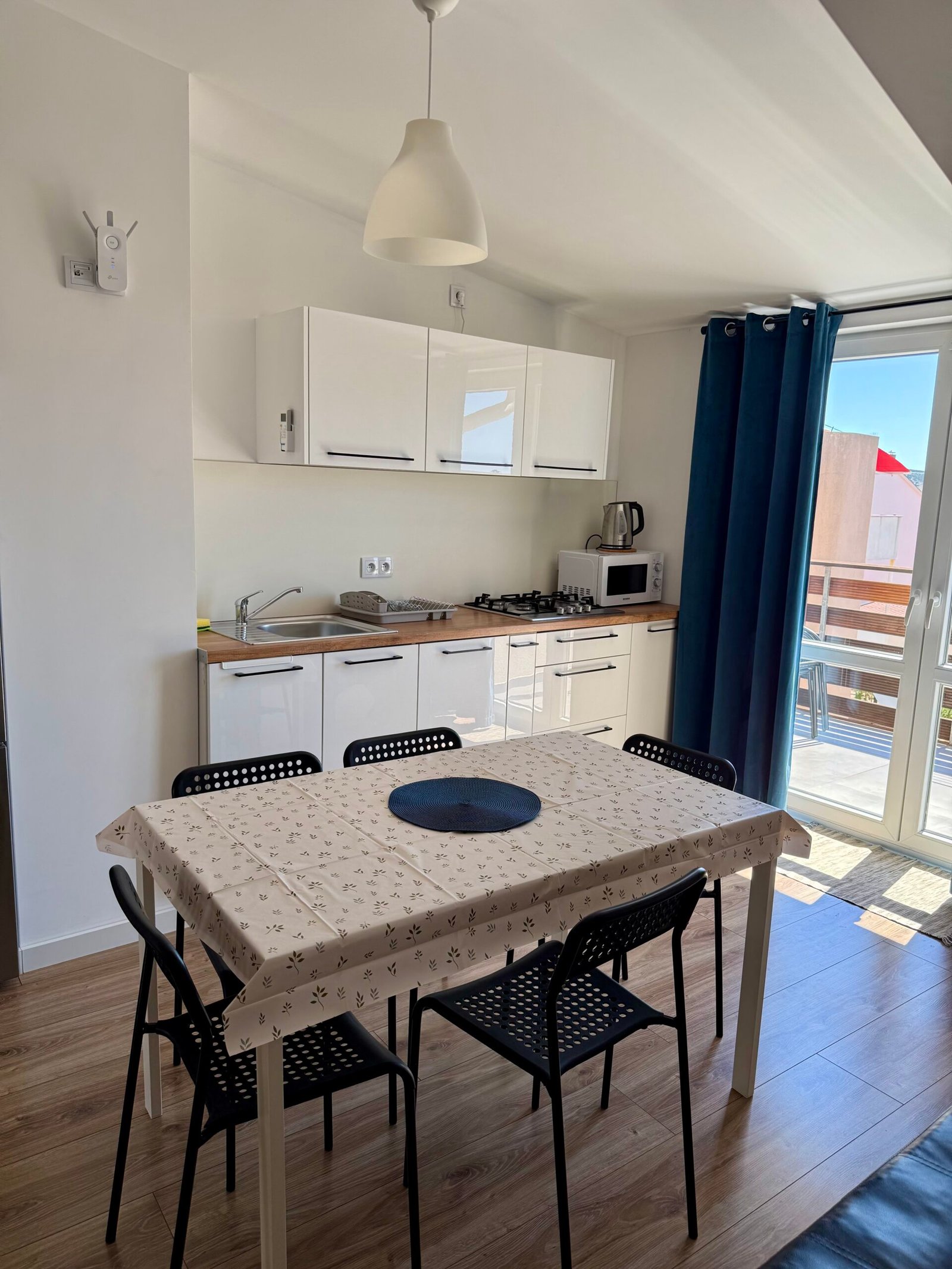 Kuchnia w pełni wyposażona: Do Twojej dyspozycji są: duża lodówka, zmywarka, kuchenka gazowa, mikrofalówka oraz pełna zastawa stołowa. Przygotujesz tu każdy posiłek bez zbędnego stresu.